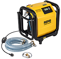 Wie REMS Multi-Push SL Connected, jedoch zusätzlich zur Druckprüfung von Rohrleitungs­systemen und Behältern aller Art mit Wasser.