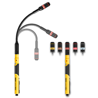 Superkleiner, superkompakter, elektronischer Leckagedetektor mit abnehmbarer, formbarer Verlängerung und wechselbaren Sensoren. Zur zuverlässigen Ortung unterschiedlicher Gasarten, z. B. Erdgas, Methan, Flüssiggas, Propan, Butan, Wasserstoff, Ammoniak und unterschiedlicher Kältemittelarten. Mit optischem und akustischem Signal bei Veränderung der Gaskonzentration. Formbare Verlängerung 200 mm, werkzeuglos abnehmbar. Für schwer zugängliche Stellen. Stabiles, schlagfestes Kunststoffgehäuse. Softgrip für sicheres, ergonomisches Arbeiten.